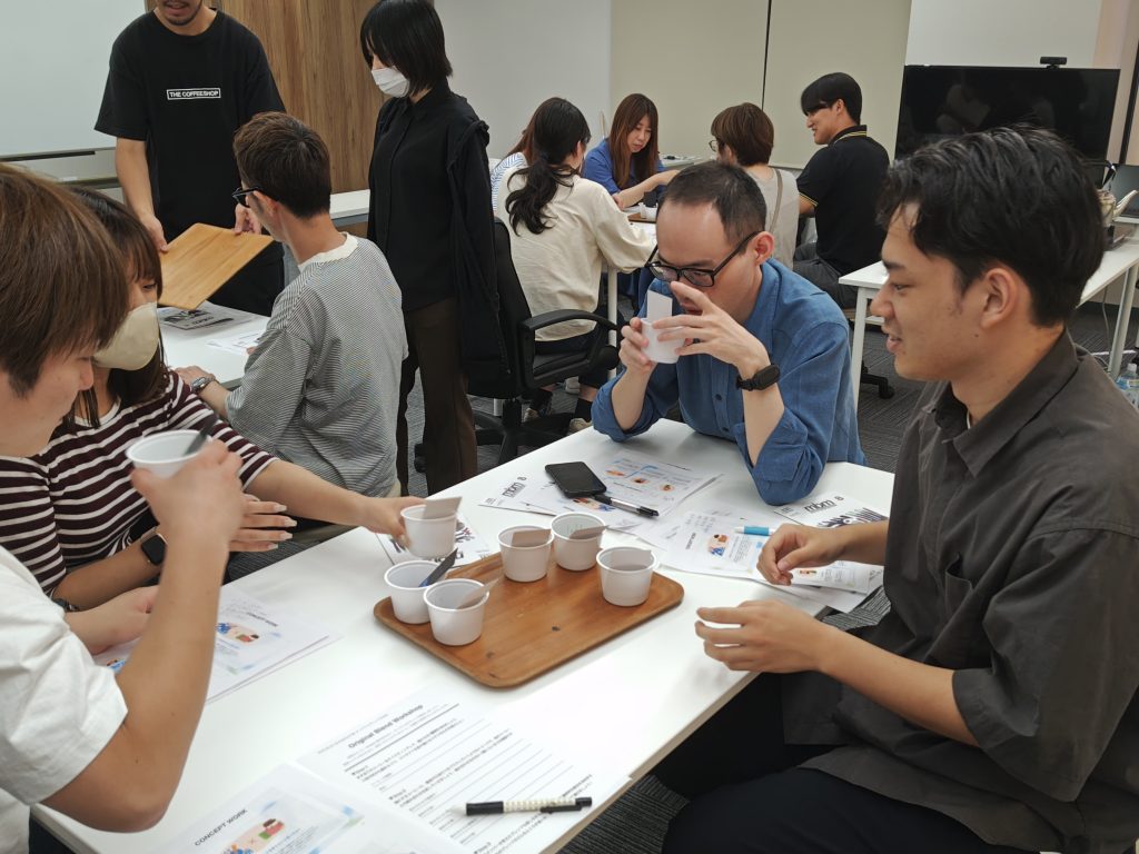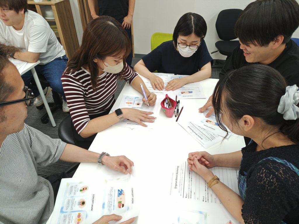まずはチームごとにコンセプトを振り返り、どんな味わいを目指すのかを話し合いました。安心感や未来志向、人とのつながりといったテーマに沿って意見を交わし、オリジナルブレンドの方向性を固めていきます。
